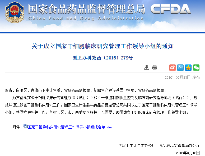 各省、自治區(qū)、直轄市衛(wèi)生計(jì)生委、食品藥品監(jiān)管局,新疆生產(chǎn)建設(shè)兵團(tuán)衛(wèi)生局、食品藥品監(jiān)管局:為貫徹落實(shí)《干細(xì)胞臨床研究管理辦法(試行)》和《干細(xì)胞制劑質(zhì)量控制及臨床前研究指導(dǎo)原則(試行)》,規(guī)范并促進(jìn)我國干細(xì)胞臨床研究工作,國家衛(wèi)生計(jì)生委與食品…